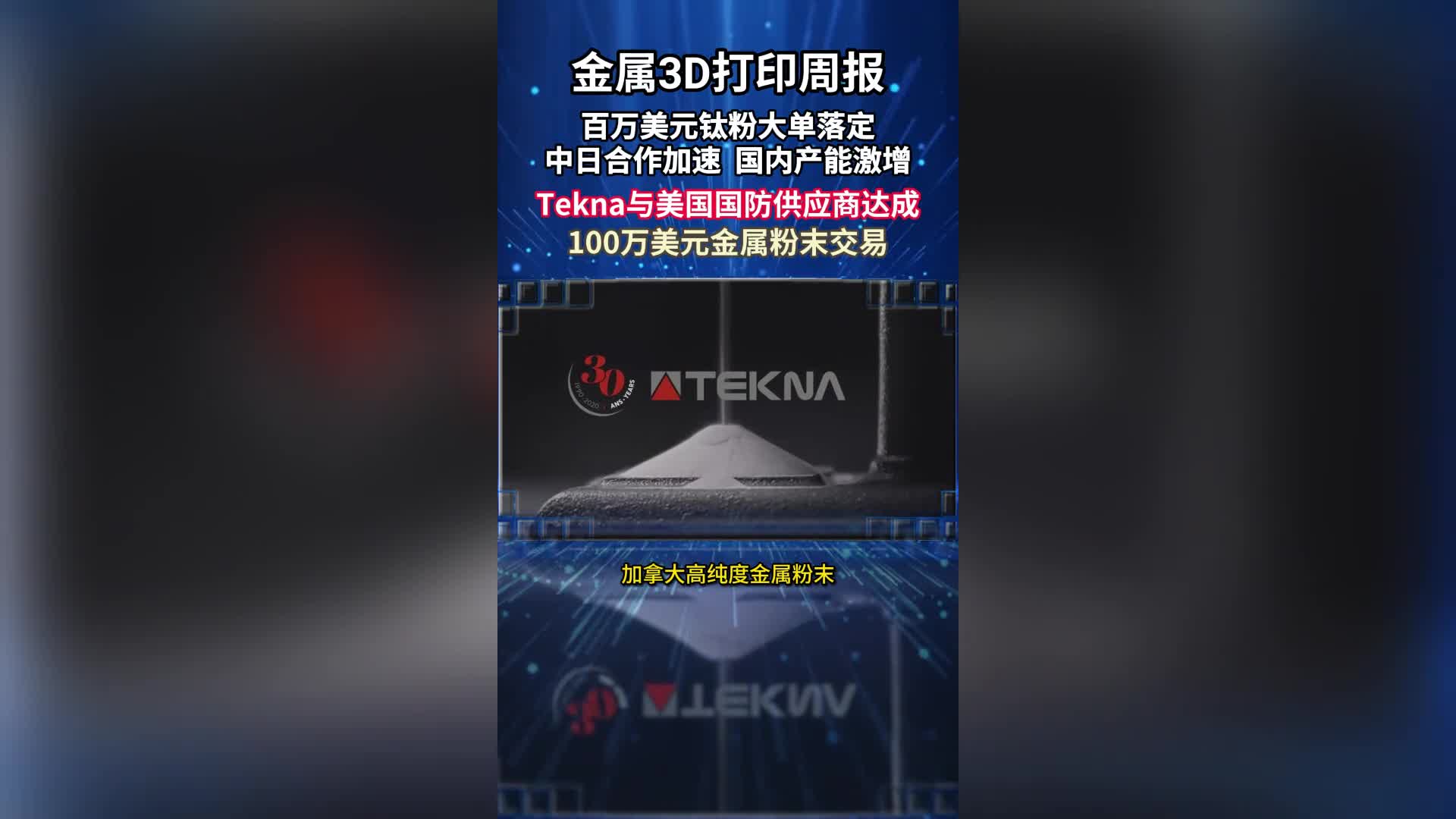 金屬3D打印周報(下):百萬美元鈦粉大單落定,中日合作加速,國內產能激增